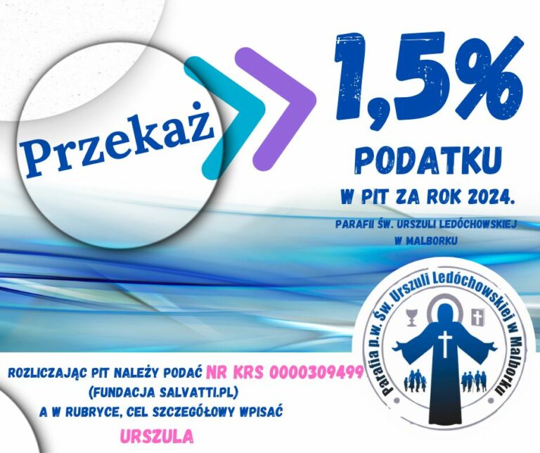 Razem możemy więcej! Pod koniec kwietnia mija termin rozliczenia z fiskusem. Zachęcamy aby podarować naszej Parafii 1,5% podatku dochodowego. Ten kto zdecyduje się na te formę pomocy Parafii nie ponosi żadnych kosztów, a dla Parafii to ogromny zastrzyk finansowy. WAŻNE! – jeśli podatnik nie wskaże organizacji której chce przekazać podatek, trafia on do budżetu Państwa …