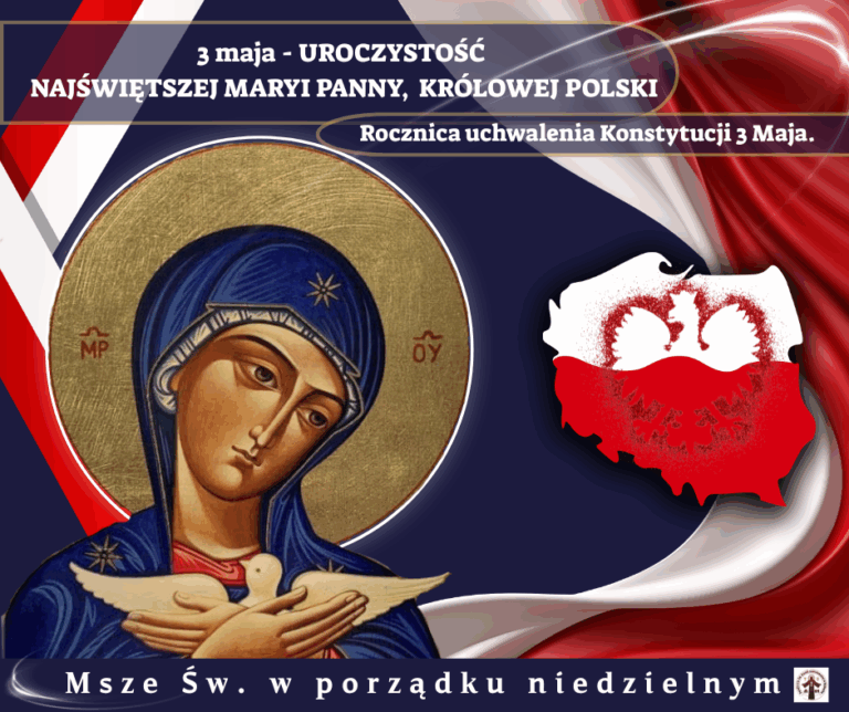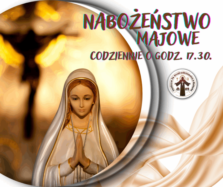 W czwartek rozpoczynamy miesiąc maj połączony z nabożeństwami ku czci Najświętszej Maryi Panny. Zapraszamy do wspólnej modlitwy przed Najświętszym Sakramentem Litanią Loretańską połączonej z rozważaniem o Matce Bożej codziennie o godz. 17.30.
